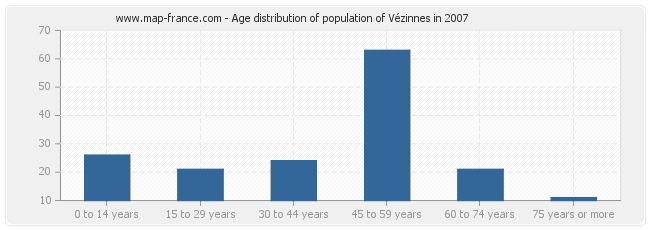 - Population of Vézinnes from 45 to 59 years : 42 inhabitants