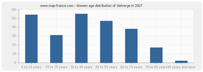 - Vielverge women inhabitants from 30 to 44 years : 55