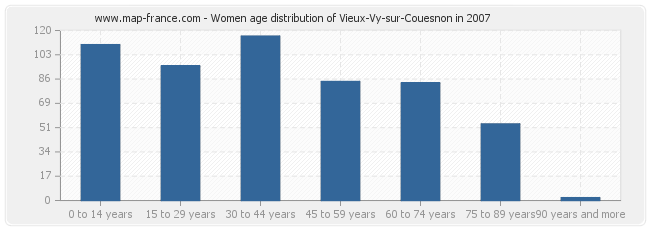 Women population distribution of Vieux-Vy-sur-Couesnon by age in 2007 :