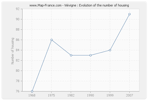The number of housing of Viévigne was 91 in 2007, 84 in 1999, 83 in 1990, 83 in 1982, 86 in 1975 and 76 in 1968.