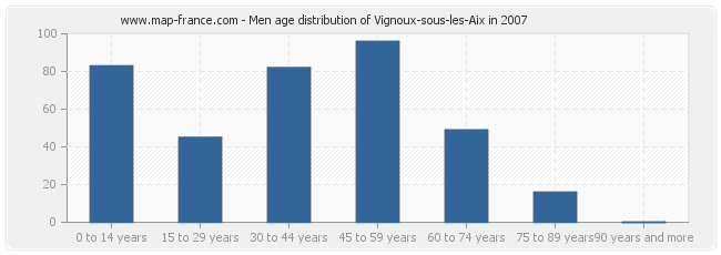 - Vignoux-sous-les-Aix men inhabitants from 45 to 59 years : 96