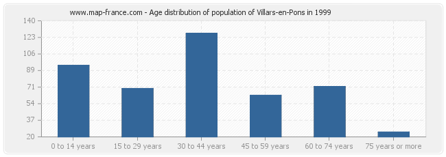 Distribution of the population of Villars-en-Pons by age in 1999 :
