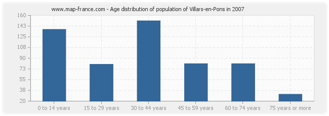 Distribution of the population of Villars-en-Pons by age in 2007 :