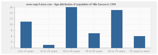 - Population of Ville-Savoye from 30 to 44 years : 16 inhabitants