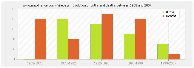 Villebazy : evolution of births and deaths from 1968 to 2007