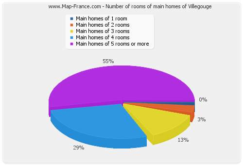 - Number of main homes of Villegouge of 1 room : 0 - Number of main homes of Villegouge of 2 rooms : 14 - Number of main homes of Villegouge of 3 rooms : 56 - Number of main homes of Villegouge of 4 rooms : 56 - Number of main homes of Villegouge of 5 rooms and more : 239 |