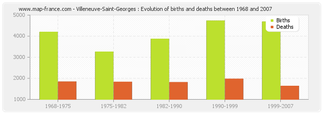 Villeneuve-Saint-Georges : evolution of births and deaths from 1968 to 2007