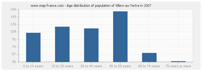 - Population of Villers-au-Tertre from 45 to 59 years : 155 inhabitants