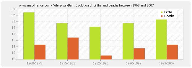 Villers-sur-Bar : evolution of births and deaths from 1968 to 2007