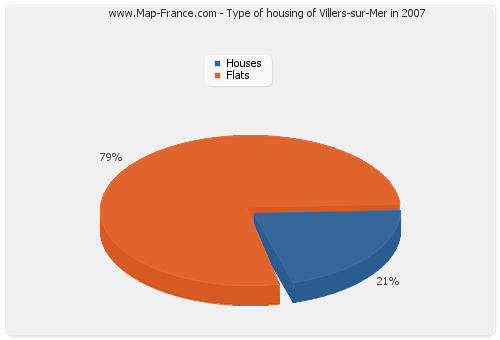 In 2007 the accommodations of Villers-sur-Mer consisted of 1 348 main homes, 7 966 second homes and 90 vacant accommodations.