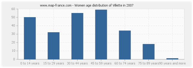 - Population of Villette from 60 to 74 years : 59 inhabitants