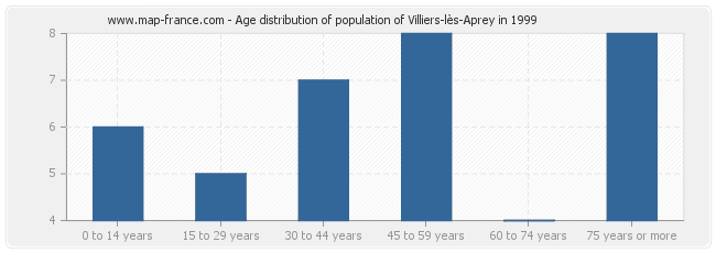 - Population of Villiers-lès-Aprey from 45 to 59 years : 8 inhabitants