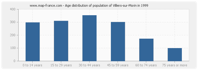 Distribution of the population of Villiers-sur-Morin by age in 1999 :