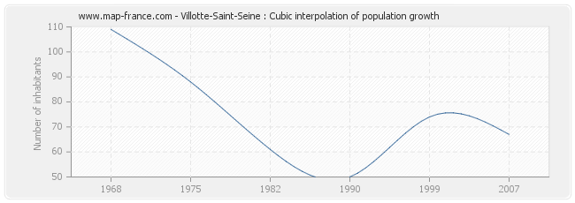 Population of Villotte-Saint-Seine was 67 inhabitants in 2007, 74 inhabitants in 1999, 50 inhabitants in 1990, 61 inhabitants in 1982, 88 inhabitants in 1975 and 109 inhabitants in 1968.