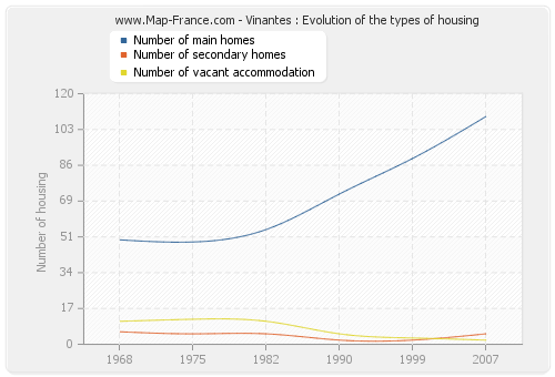 The number of housing of Vinantes was 117 in 2007, 94 in 1999, 79 in 1990, 71 in 1982, 66 in 1975 and 67 in 1968.