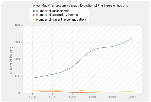 The number of housing of Virsac was 342 in 2007, 288 in 1999, 268 in 1990, 180 in 1982, 137 in 1975 and 109 in 1968.