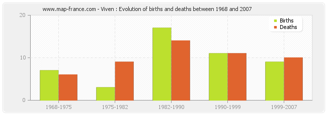 Population of Viven was 168 inhabitants in 2007, 156 inhabitants in 1999, 166 inhabitants in 1990, 124 inhabitants in 1982, 118 inhabitants in 1975 and 103 inhabitants in 1968.