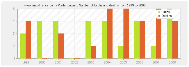 Vœllerdingen : births and deaths from 1999 to 2008