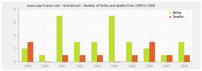 - Warnécourt in 2008 : 3 births and 1 deaths