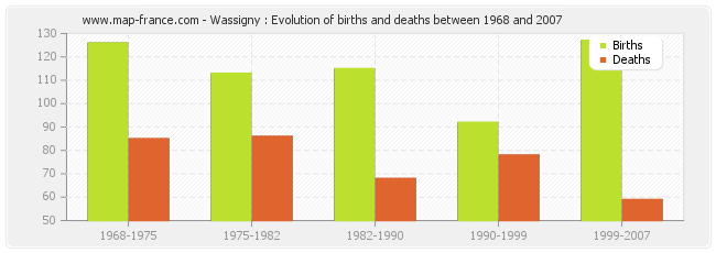 Wassigny : evolution of births and deaths from 1968 to 2007