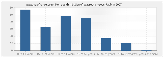 - Wavrechain-sous-Faulx men inhabitants from 0 to 14 years : 57
