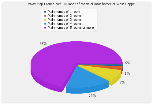 - Number of main homes of West-Cappel of 1 room : 0 - Number of main homes of West-Cappel of 2 rooms : 2 - Number of main homes of West-Cappel of 3 rooms : 15 - Number of main homes of West-Cappel of 4 rooms : 15 - Number of main homes of West-Cappel of 5 rooms and more : 141 |